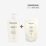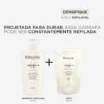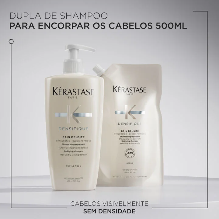 Pensando no planeta e na praticidade para você, o Bain Densité agora está disponível em um formato eco-consciente: O Shampoo Kérastase Densifique Bain Densité Refilável !